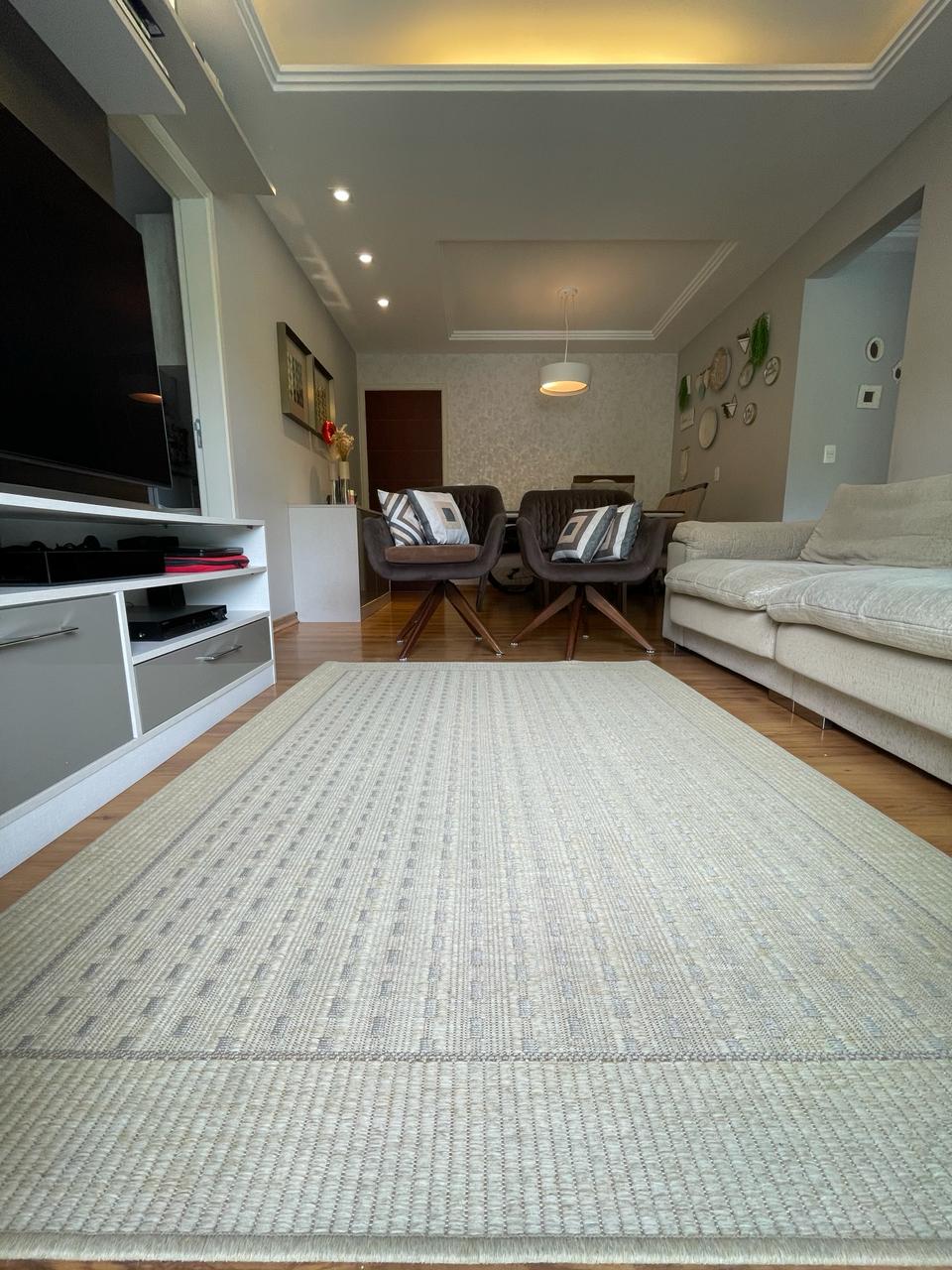 São 2 quartos, sendo 1 suíte, 3 banheiros sendo 1 na suíte, 1 social e outro na área de serviços. Sala de estar e jantar integrada com varanda e cozinha ampla para os padrões atuais com área de serviços.